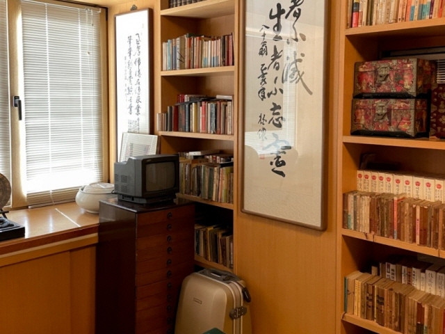 책이 가득한 책장이 사방으로 둘러 있고, 집필 도구와 일상 생활용품이 생전 그대로 전시되어 있다. 문인들의 저자 서명 기증본, 집필에 필요한 전문자료, 그 외 문학 서적들로 빼곡하게 둘러싸여 있다.