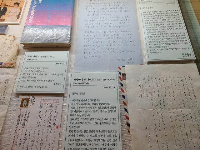 편지 중에는 문인으로서 구인환, 김규동, 김남조, 김은국, 박재삼, 서정주, 오영수, 이문구 등의 편지와 해외 작가들의 편지, 그리고 사랑하는 가족들의 편지가 진열대 위에 가득했다. 당시 한무숙을 아끼고 사랑했던 마음들이 고스란히 전해오는 듯했다.