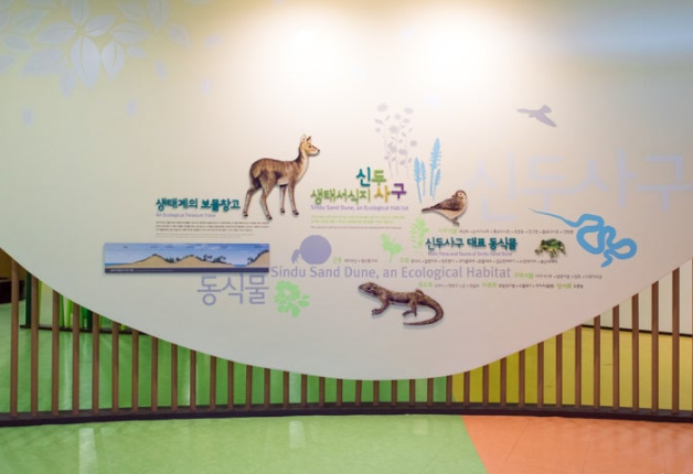 전시시설은 흥미, 체험, 교육, 효율의 4대 요소가 접목된 자연생태계를 그대로 간직하고 있는 신두사구 생태를 그대로 연출해 놓았다. 전시실에 들어서면 프롤로그로부터 시작하여 바람 언덕, 모래언덕, 신두 언덕, 에필로그로 이어지는 전시물로 이루어져 있다.