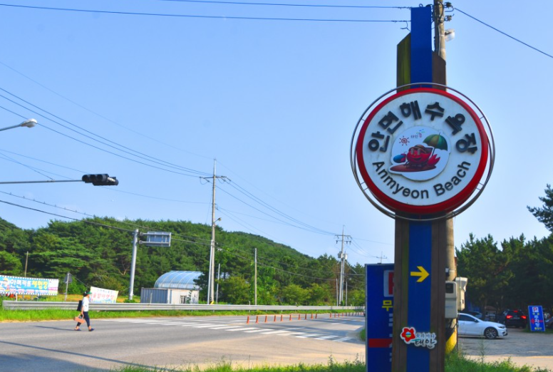 안면도의 연육교를 지나 10여 분 더 달리다 보면 안면해변의 안내판과 마주하게 된다. 여기서 5분 정도 소나무 숲 사이를 자동차로 달리면 넓은 백사장의 안면해변에 다다르게 되는데, 도착하기까지는 주변이 산과 논으로 이루어져 이곳이 바닷가라는 말을 의심케 한다.
