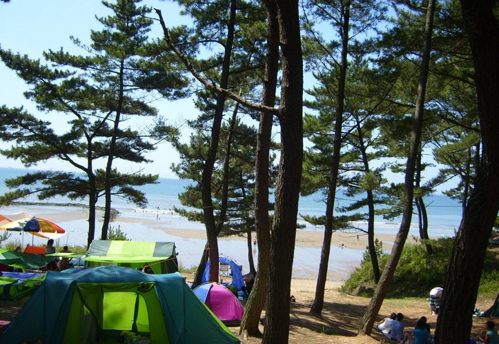 드넓은 모래사장 주변에는 소나무 숲이 조성되어 있어 야영을 하거나 텐트를 치기에 적합하며, 진입로 주변에는 민박집이 즐비하여 숙박이 편리하다.
