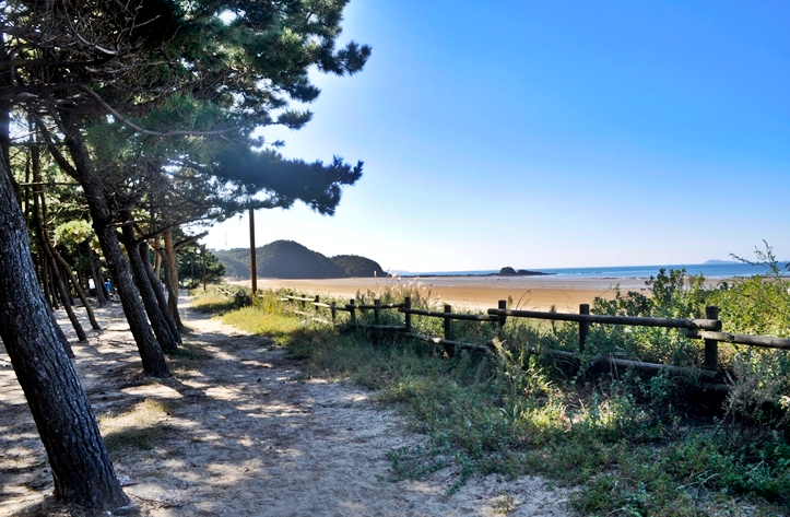 해변의 모래가 아주 곱고 희며 천연의 사구가 발달되어 있어 아이들의 생태학습에 도움이 될 뿐만 아니라 울창한 자연송림이 가까이 있어 야영하기 좋아 가족 단위의 피서지로 적당하다.