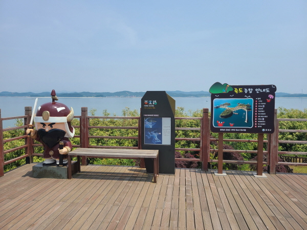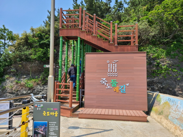 죽도 여행은 죽도 둘레길을 걷는 것부터 시작된다. 선착장에서 마을 쪽으로 들어가면 마을 못 미쳐 둘레길로 들어서는 계단이 나온다. 거기서부터 소나무 숲을 지나 대나무가 자리는 길을 따라 걸으면 된다. 둘레길을 따라 옹팡섬, 동바지, 담깨비 등 3개의 조망대에 올라서면, 올망졸망한 죽도 이외 11개의 섬과 탁 트인 바다를 한눈에 볼 수 있다.