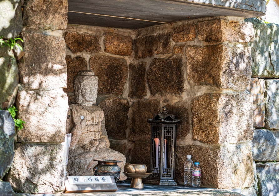 옛터에는 보물 제355호로 지정된 마애석불 1위와 절 입구에는 통일신라 시대의 작품으로 추정되는 또 다른 마애석불 1위가 충청남도유형문화재 제118호로 지정되어 있고, 장방형 석조(石槽)와 절구, 거대한 맷돌이 있으며, 부도 등 많은 문화재가 남아있다.