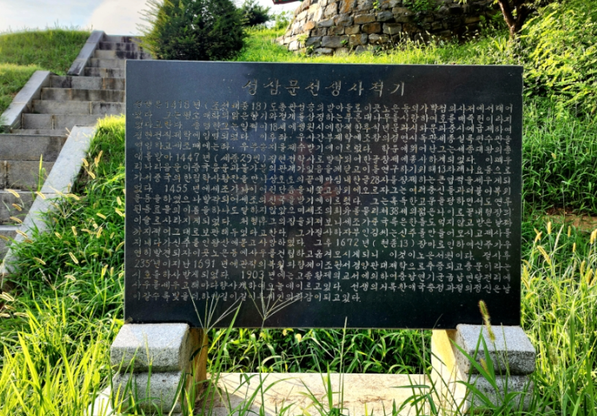 성삼문 선생 유허지는 사육신의 한 사람으로 절개의 상징인 성삼문이 태어난 외가 집터로, 성삼문을 비롯하여 사육신의 위패를 봉안한 노은단(魯恩壇)과 성삼문 선생 유허비 등이 있다.