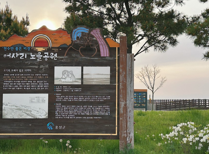 일몰 명소이기도 한 이곳의 바다 위로 해가 떨어지는 장관을 사진에 담고 싶다면 갯벌 위에 설치한 전망대에 올라가면 된다. 어사리 노을공원에서 남쪽으로 남당항로를 따라 대하와 전어를 맛볼 수 있는 남당항이 있다.