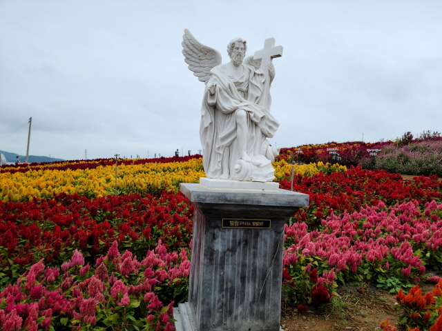 병풍도 아래 노둣길로 연결된 4개 섬에 예수의 열두 제자를 상징하는 작은 예배당이 세워졌다. 모양이 독특해 하나하나가 작품이다. 스페인의 산티아고 순례길(800km)에서 아이디어를 빌려와 섬티아고라 불린다.