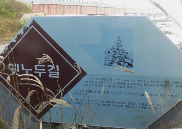 수곡리와 추포리를 잇는 노두는 여느 섬에서는 찾아보기 힘든 명물인데 썰물 때면 2.5km에 이르는 두 마을을 연결해 주는 징검다리로 추포리 주민들에게 미끄럼을 막기 위해 수천 개가 넘는 돌멩이를 매년 한 번씩 뒤집어 준다.