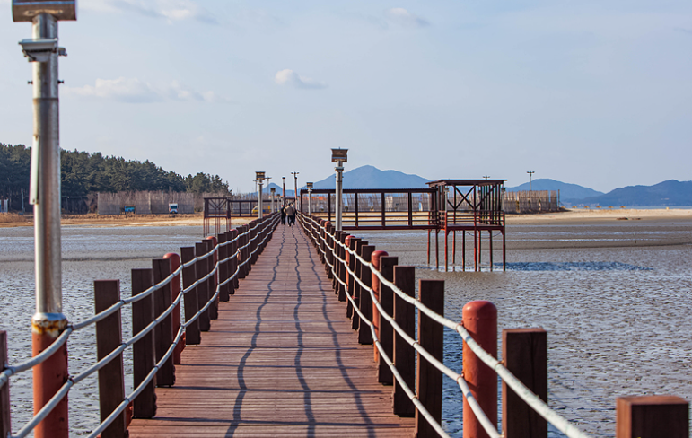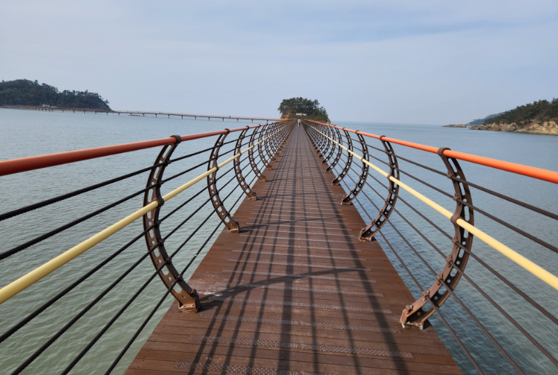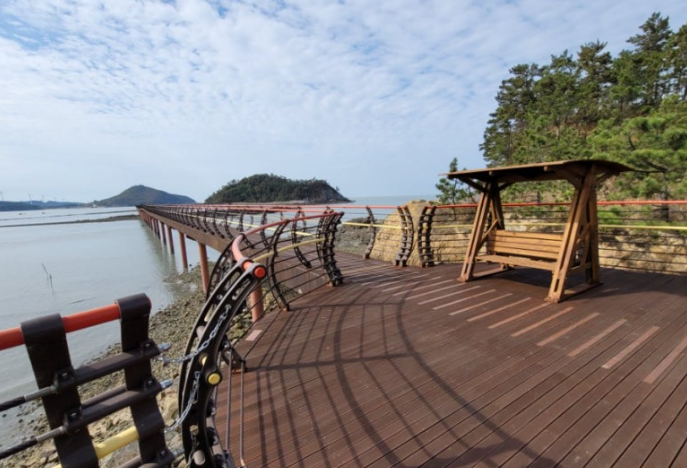 특히 이곳 갯벌에 함유되어 있는 게르마늄은 신비의 약리작용과 함께 산소 운반의 매개체 역할을 해 체내에 풍부한 산소를 공급하고 자연 치료제인 엔돌핀의 생성을 도와준다. 다리 중간에는 휴식을 취할 수 있는 팔각정과 밤이 되면 더욱 빛이 나는 소망의 다리가 있다. 암흑이 드러워진 곳에 퍼플교만의 환한 불빛을 비추고 다리 아래로는 바닷물이 가득차 있다.