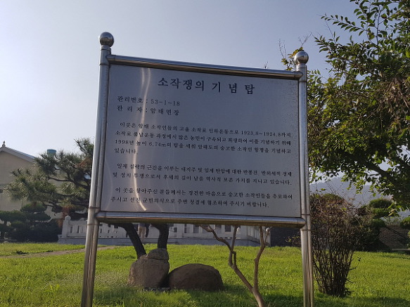 암태도 소작인 항쟁기념탑은 1998년 암태도 소작인 항쟁을 기념하기 위하여 6.14m 높이로 세워졌다. 기념탑에는 소작인 항쟁사와 항쟁에 참가했던 농민 43명의 이름이 새겨져 있다.