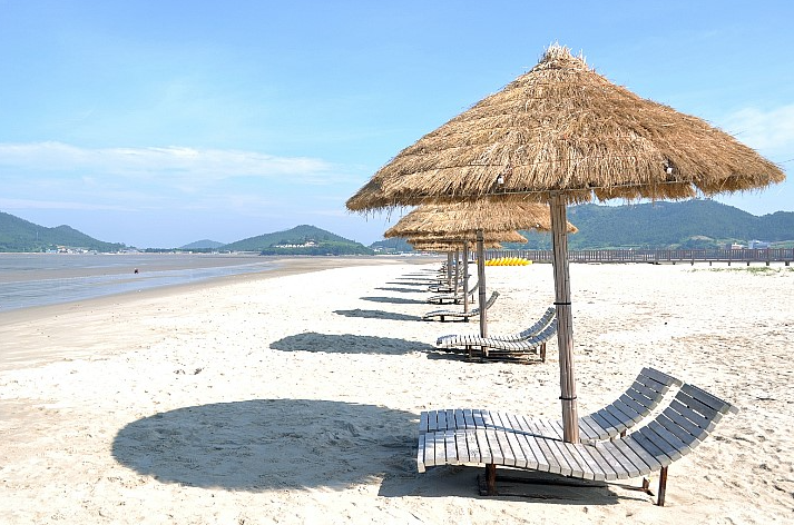 백사장 길이 12km, 너비 300m로 임자도 서쪽에 있다. 해변이 전국에서 가장 길고 넓으며 경사가 완만하고 수온이 따뜻하다. 특히 백사장은 항공기용 유리를 만드는 데 쓰일 만큼 질이 좋은 규사 모래밭이다. 넓은 야영장과 잔디운동장·체육시설 등이 갖추어져 있어 청소년캠프나 단체 야영장으로도 적합하다.