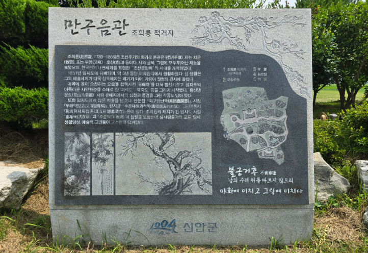 추사 김정희 등이 도입한 중국 남종 문인화로부터 이념미를 배제한 조선적 감각을 가미한 화풍의 세계를 열었던 사람이다. 안동 김씨와 풍양 조씨가 서로 번갈아 가며 세도정치를 하던 시기에 활동한 조희룡은 예송논쟁에 휘말려 1851년 임자도로 유배되었다. 조희룡은 임자도 유배시설에 예술적 기량이 더욱 꽃 피웠고, 임자도 이야기를 많은 저술로 남겨놓았다.
