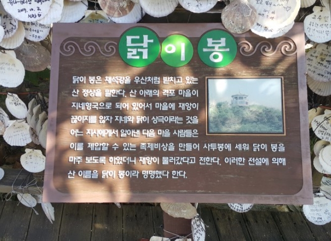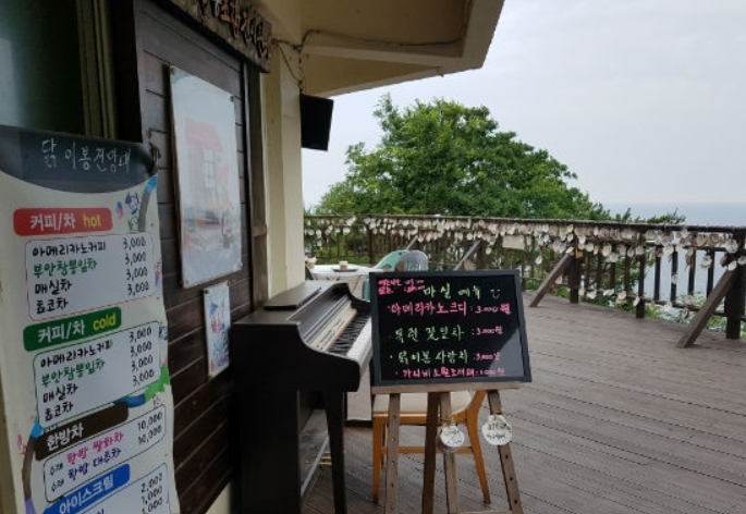 닭이봉 꼭대기에는 팔각정의 전망대가 있는데, 이곳에는 잠사 쉬면서 차 한 잔 마실 수 있는 카페도 있다. 닭이봉 전망대에선 멀리 위도와 칠산 앞바다를 한눈에 볼 수 있다.