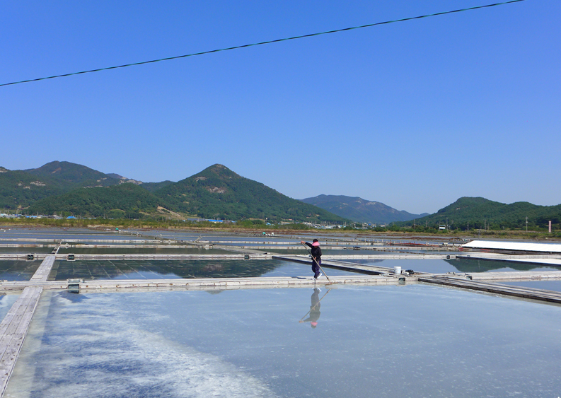 염전은 크게 저수지 → 증발지 → 결정지로 나누어진다. 밀물 때 바닷물을 저수지에 저장해 놓았다가 긴 수로를 따라 바닷물을 증발지로 보낸다. 이때 바닷물은 5%의 소금기를 담고 있다. 증발지에서 또 7∼8일을 증발시킨다. 결정지(항아리 조각 타일을 붙인 밭)로 바닷물을 보낸다. 소금밭 1개소에 기존의 소금 30㎏ 정도와 증발수를 혼합하면서 거품이 많이 나도록 하면, 거품이 떠다니면서 증발되는 염기가 거품에 부착되어 무게를 이기지 못하고 가라앉는다. 이때 바닷물은 약 25%의 소금기가 들어있는 짠물이다. 이 결정지에서 바람과 햇볕에 2∼3일 말리면 소금이 만들어진다. 그러면 고무래로 소금을 긁어모아 소금창고로 간다. 이렇게 만들어진 천일염으로 담근 젓갈이 곰소 젓갈이다.