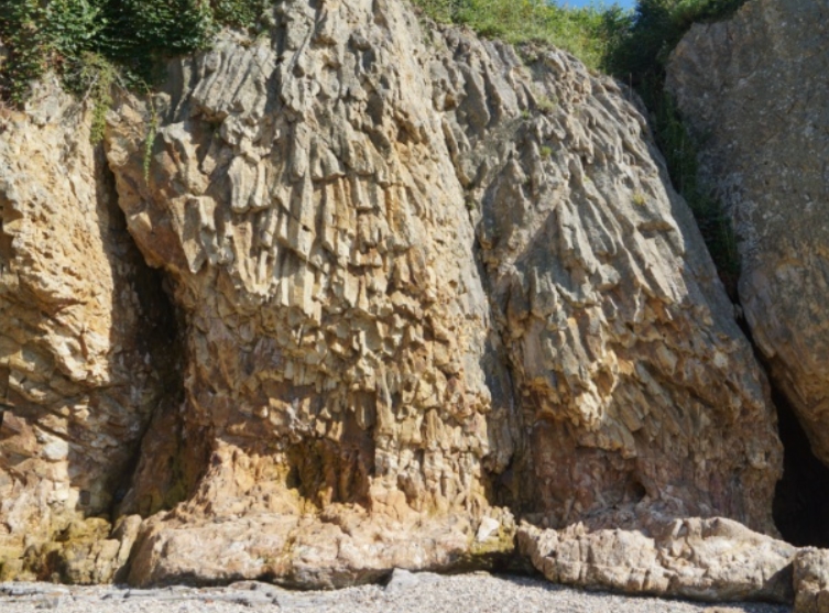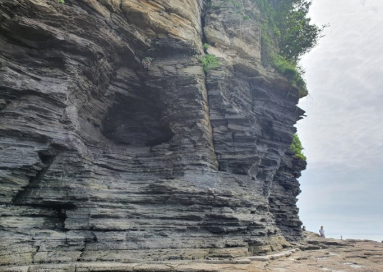 이곳 바닷물의 침식을 받은 화산성 퇴적암층은 격포리층으로 역암 위에 역암과 사암, 사암과 이암의 교대층 (호층, 互層), 셰일, 화산회로 이루어진 이암의 층서를 나타낸다. 단층과 습곡이 유난히 발달된 기암절벽이 십자동굴을 비롯하여 곳곳에 해식동굴을 형성하였다.
