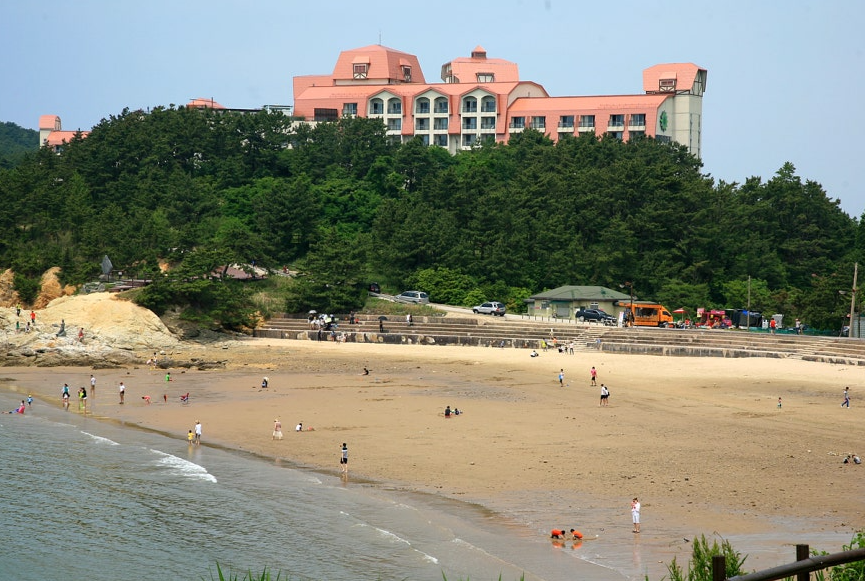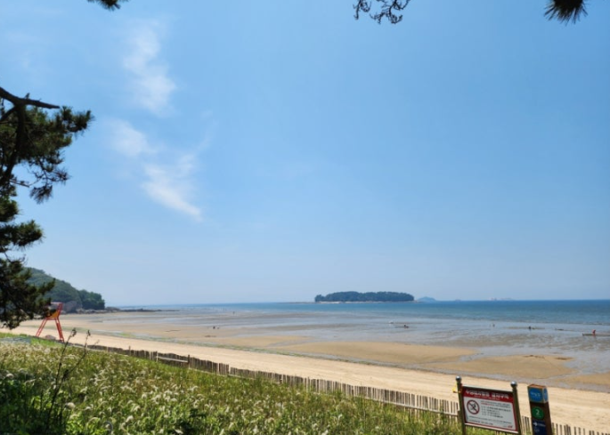 규모는 작지만 아담한 백사장과 울창한 소나무밭이 아름다운 조화를 이루고 있어 조용하고 한적한 분위기가 매력적이며, 서해안의 다른 해수욕장과 달리 썰물 때 물이 빠져도 하얀 모래가 끝없이 펼쳐져 있고, 숙박 시설과 편의시설을 갖춘 종합관광휴양지로 여름철 피서지로도 사랑받는다.