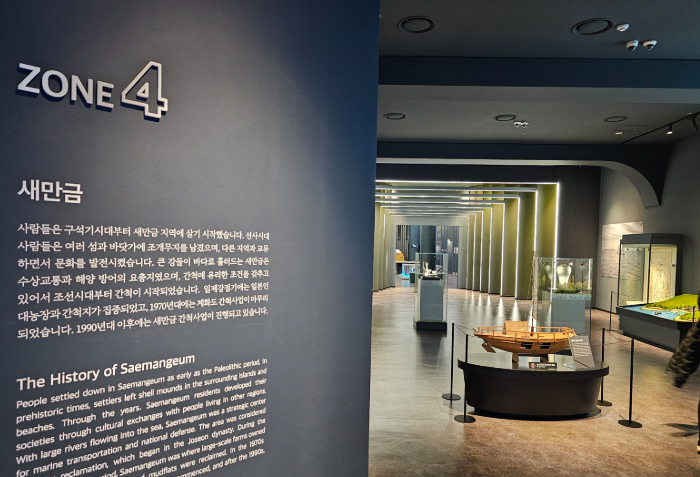 3층 상설전시실에는 ▷바다·갯벌·사람 ▷세계 및 한국의 간척 ▷새만금의 혁신 등을 주제로 다양한 콘텐츠가 구성돼 있으며, 새만금의 발전과정을 담은 고지도와 각종 민속품 등 6000여 점의 소장품이 전시돼 있다.